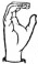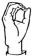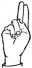 На ћирилици написано САНДРА РЕСКОВИЋ састоји се из 14 слова [?]. Исписано ћириличном једноручном азбуком за глувонеме: